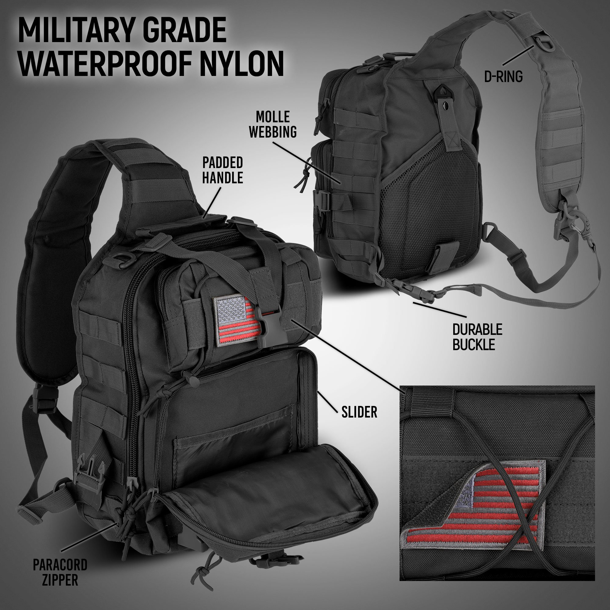 • MULTIPURPOSE: Perfect for an outdoor EDC sling pack, tactical messenger chest bag, EMT hand bag, go bag, bug out bag and is a great tactical assault pack. This over the shoulder backpack is very useful for short trips and travel and designed to meet your on-the-go needs.